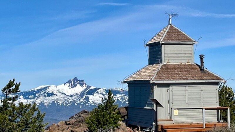 The trail to the top of Black Butte starts part way up the butte after a drive on a fairly well maintained dirt and gravel road followed by a poorly maintained dirt and rock road. Once you reach the trailhead (complete with stocked toilets), the two mile hike to the top of the butte can be accomplished fairly quickly.  Hikers gain over 1500 feet in the two miles, but the Cascade views from Broken Top to Mt Adams can be spectacular on a clear day.