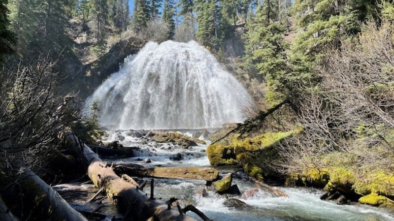 After climbing back up to the viewpoint, hikers can elect to return to the trailhead or continue on to Upper Chush Falls past smaller Cascades Waterfall. This path has not been cleared of fallen trees, so it is much slower to hike over, under and around the tree trunks. However, for those who make it to the trail's end, it is surprising to see the 200 foot waterfall; Lower Chush Falls is 50 feet. The vegetation is thick at the base of Upper Chush Falls with the canyon Whychus Creek flows through steep so it is challenging to really get a great view. The easiest access for photos is up the hillside above the creek over an unsteady rockfall. All in all, for those who make it to Upper Chush Falls, the total hike is 6.5 miles with 961 feet of elevation gain.