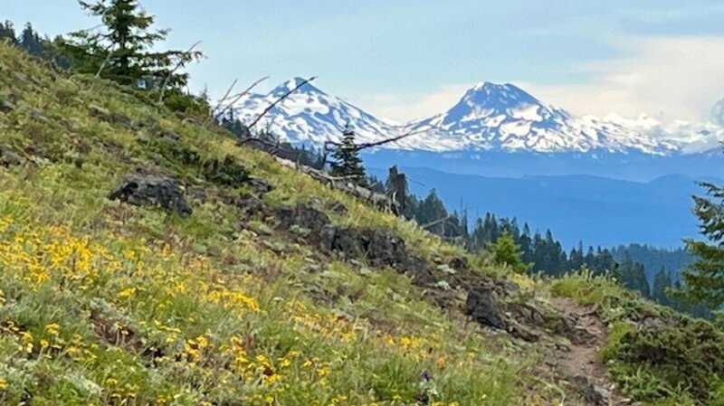 Iron Mountain remains one of the favored Central Oregon wildflower hikes that many people on both sides of the Cascades enjoy yearly. However, the lesser known and less traveled Browder Ridge offers even more wildflowers and views unseen from Iron Mountain. The easiest access to Browder Ridge Trail is near the Iron Mountain trailhead a few miles up paved forest service road 15.